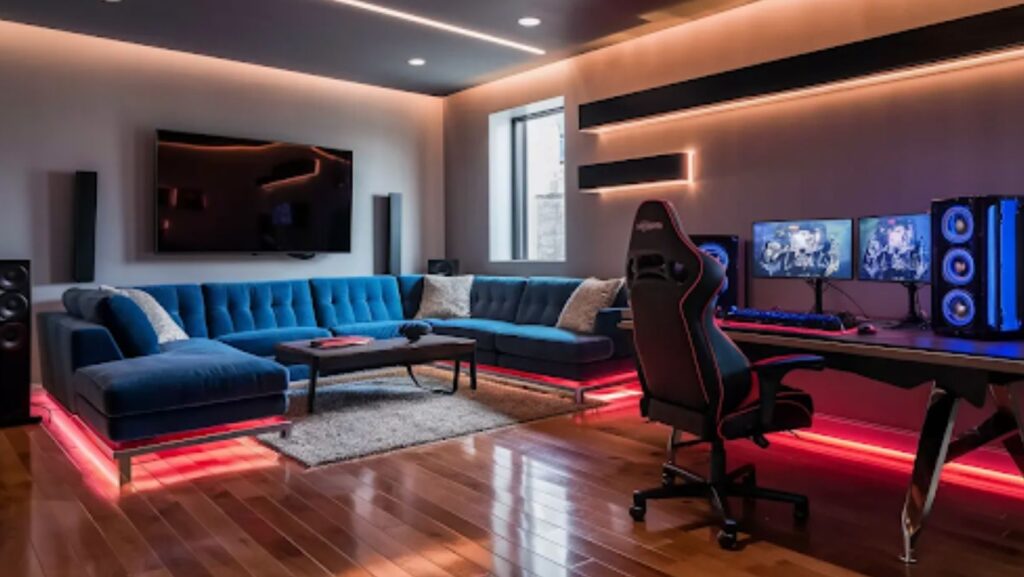 Sound and lighting play a decisive role in shaping the overall gaming and entertainment experience. Poor acoustics can result in echo, distortion, and listening fatigue, particularly in compact or unfurnished rooms. The use of acoustic panels, rugs, curtains, and upholstered furniture helps absorb excess noise and improve sound clarity. These elements are especially important for immersive gaming, streaming, or cinematic experiences.